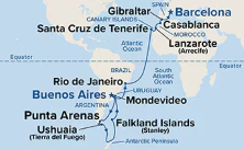 12 ports from Buenos Aires, Argentina to Barcelona, Spain