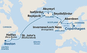12 ports from Copenhagen, Denmark to Boston